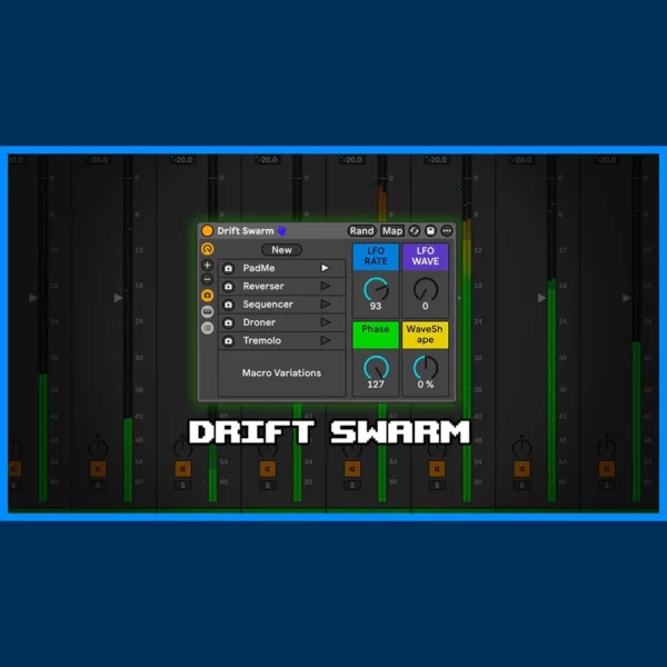 A rad new instrument rack based on a series of LFOs with distributed phase. Works in Ableton Suite, Standard, and Intro, but needs 12.2.6 and up. There is a key mapping (the "r" key) to randomize all of the instances of drift (there are 8). Each time you press "r" on your keyboard you will get a different sound. There are 5 variations included in the rack but there are MANY MANY more amazing things you can do with this setup. Explore and Enjoy!
